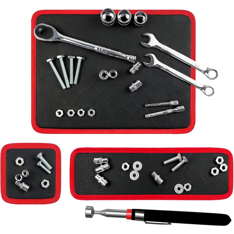 Equipped with powerful magnets, the mat securely holds screws, bolts, and metal tools in place. The included 5 LBS telescoping magnetic pickup tool extends from 7-1/8" to 30-5/16", making it easy to retrieve parts from narrow or hard-to-reach areas.